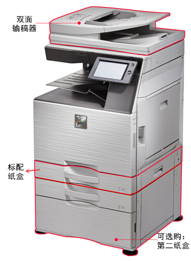 - 標(biāo)配: 雙面輸稿器+標(biāo)配紙盒
